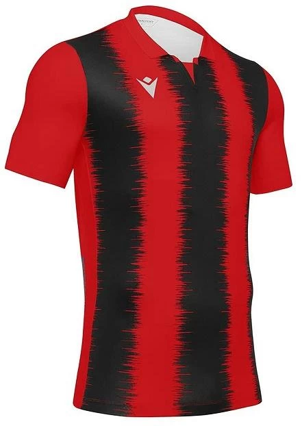 – Macron Trikot Miram rot-schwarz gestreift aus 100 % Polyester Softlock+Mesh